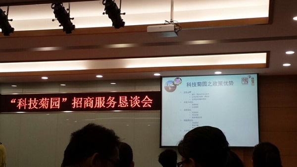 2014年10月25日,嘉定区菊园经济城举办“科技菊园”优秀企业恳谈会,本次恳谈会主要为园区优秀企业提供一个交流、学习的机会,特别是针对上海市政府科技扶持、融资及新三板上市等相关热点问题进行了交流,上海市科委、菊园经济城管委会、投行专家等相继进行了主题发言。